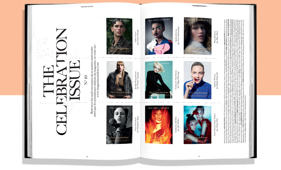 The lastest issue of Magazine Antidote, a Celebration edition , showcases new fashion series by all the invited photographers who made it happen over the years ( Hans Feurer, Cuneyt Akeroglu, Jan Welters, among others).