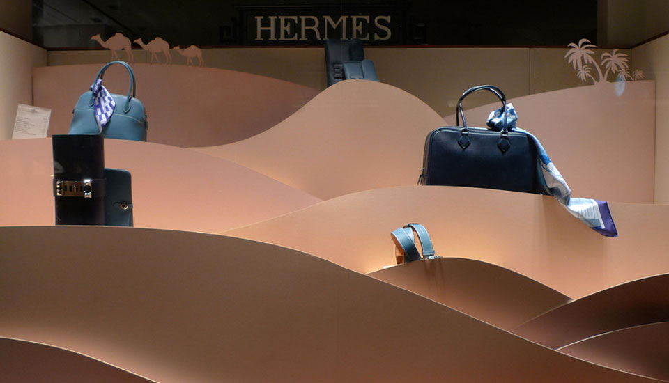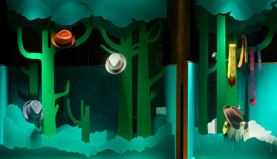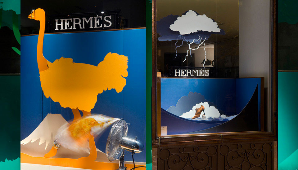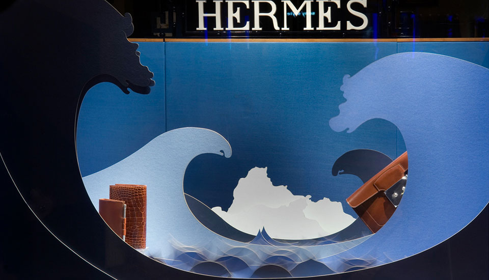 for French Luxury Brand Hermès. Laser-cut cardboard landscapes and Solar-powered animations